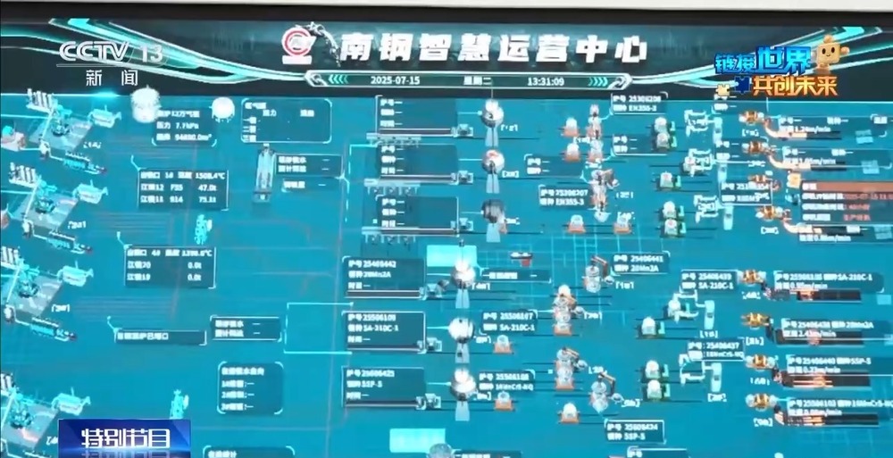 在才智大屏上,汇聚了26条出产线,一块来自非洲或许澳大利亚的小矿石,在这里逐步生长为钢筋铁骨的全流程清晰可见。